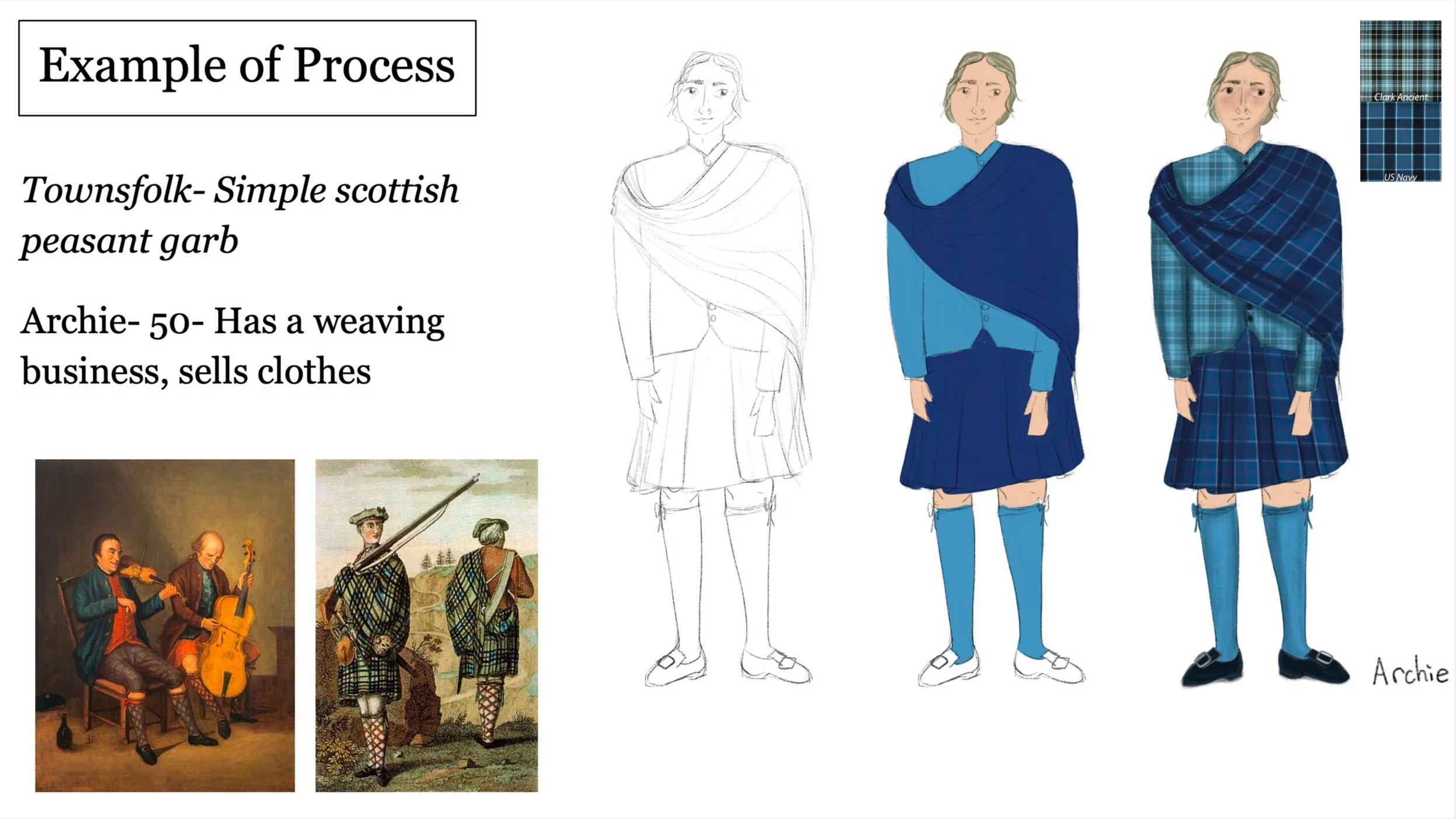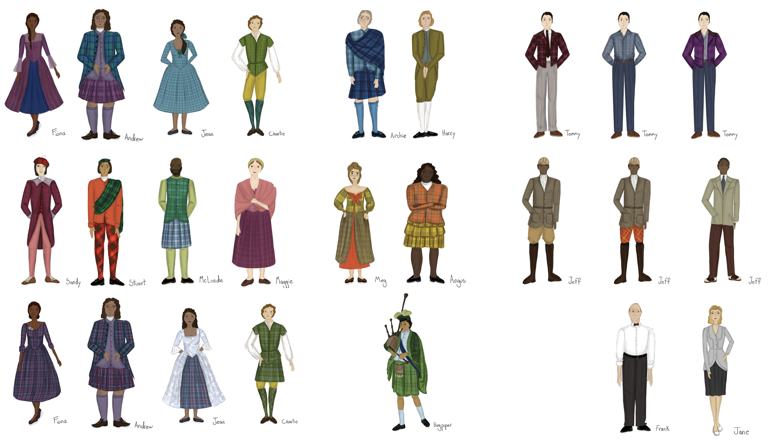 Project for costume design class designing the musical Brigadoon, a show that is set in the world of18th century Scotland and New York in the 1940s.